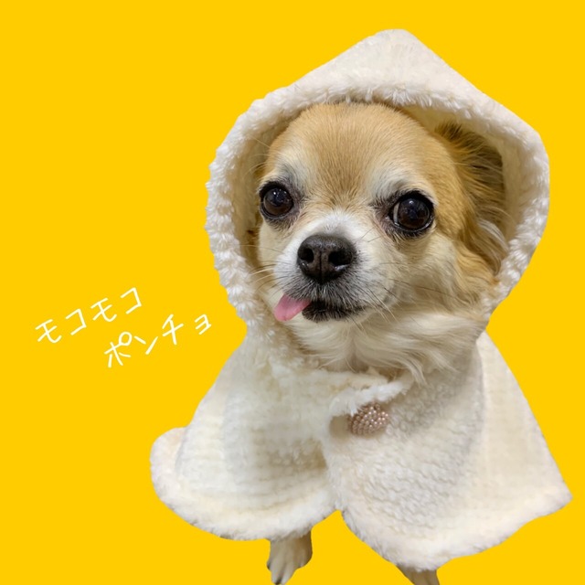 === SALE!!開催中 === ¥1,700 ⇒ ¥1,000 寒い日の散歩やお出掛けに、モコモコ温かいポンチョ! ハーネスの上から羽織れるのでとても便利です。 (リードを通す穴があります。) また、スナップボタンなので簡単に着脱可能です。 カラー : クリーム ---サイズ--- 〈ワンちゃんのヌードサイズ〉 ●Sサイズ 首回り:約23cm 後丈:約23cm ---送料--- 1着ご購入の場合:スマートレター(¥180) 2着以上ご購入のの場合:レターパックライト(¥370)
