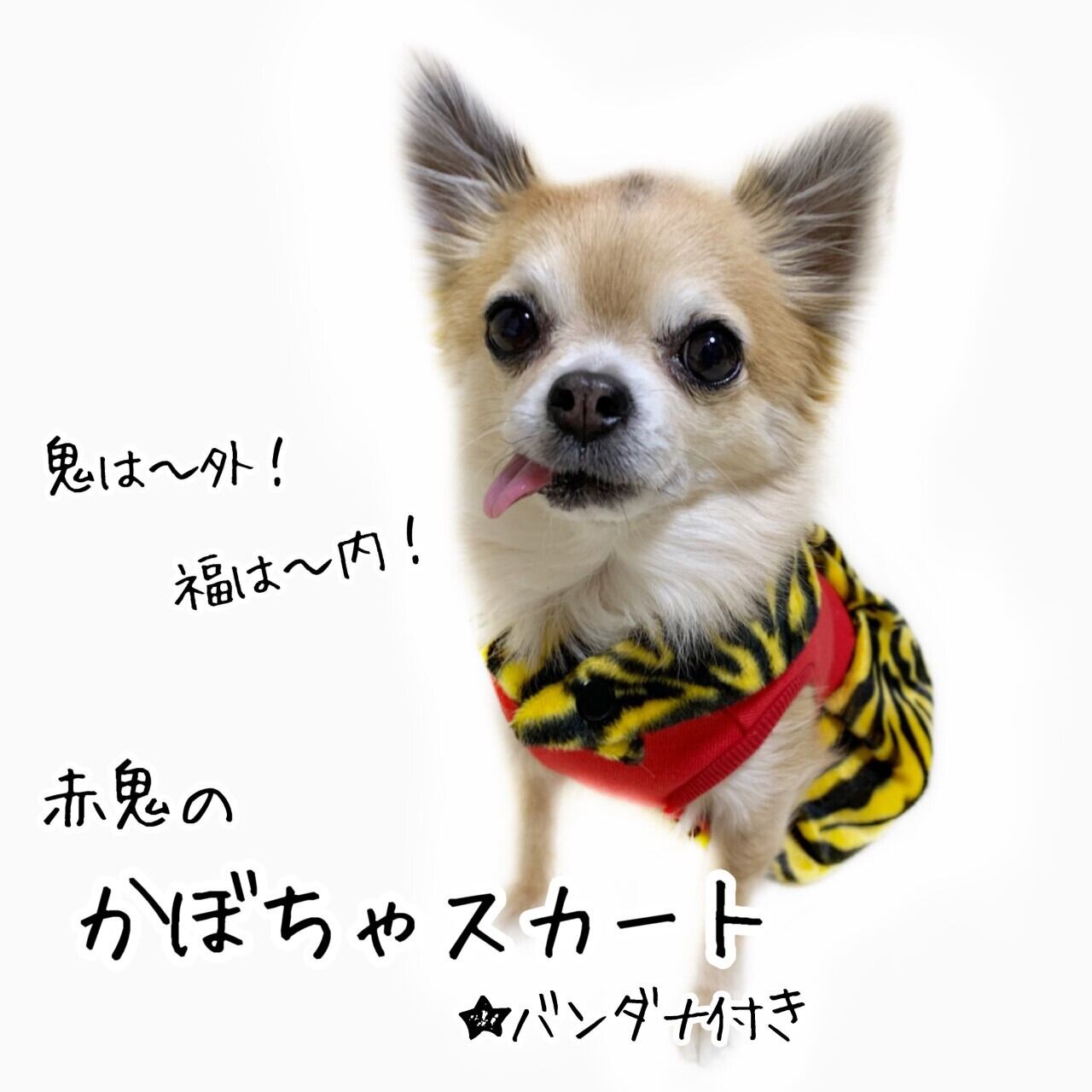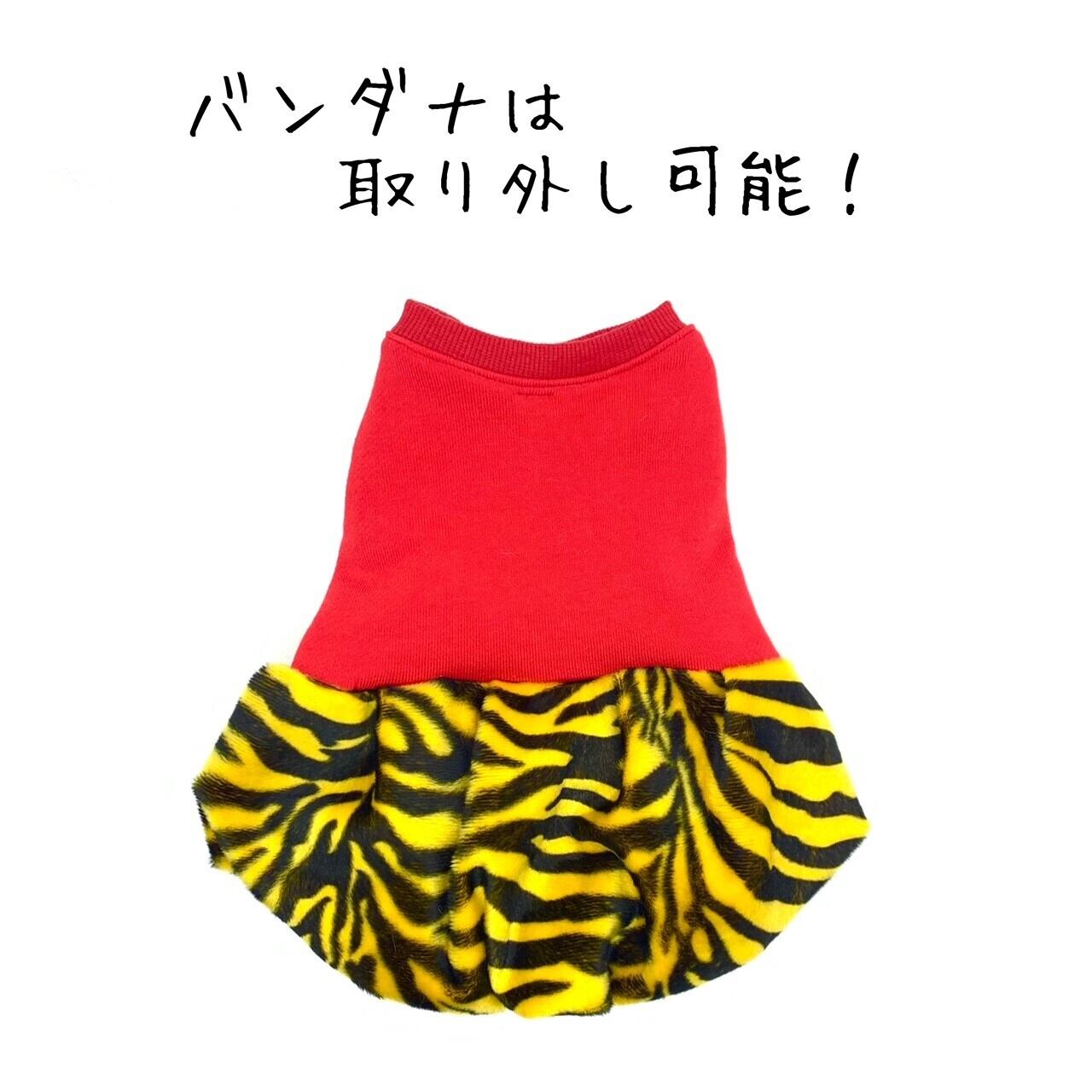 ワンちゃん用の赤鬼のかぼちゃスカート(バンダナ付き)です。