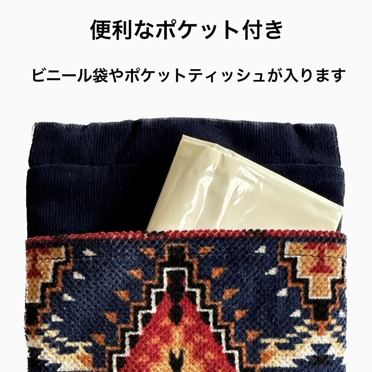 ポーチの片側にはポケットが付いているので、ビニール袋やポケットティッシュが入ります。