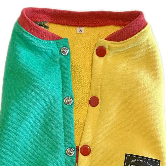 ラスタカラーのかわいいバックオープンベストです。